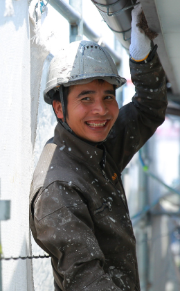 ベトナムから来ました。妻と二人の子どもがベトナムで待っています。一生けんめい家族のためにがんばって働いています。日本でみつけた好物は、カップヌードルのカレー味です。お湯を入れるだけでかんたんに作れて、とってもおいしいです。ときどき、息ぬきにみんなとコンビニに行ったり、ラーメンを食べに行ったりして、毎日楽しく仕事をしています。